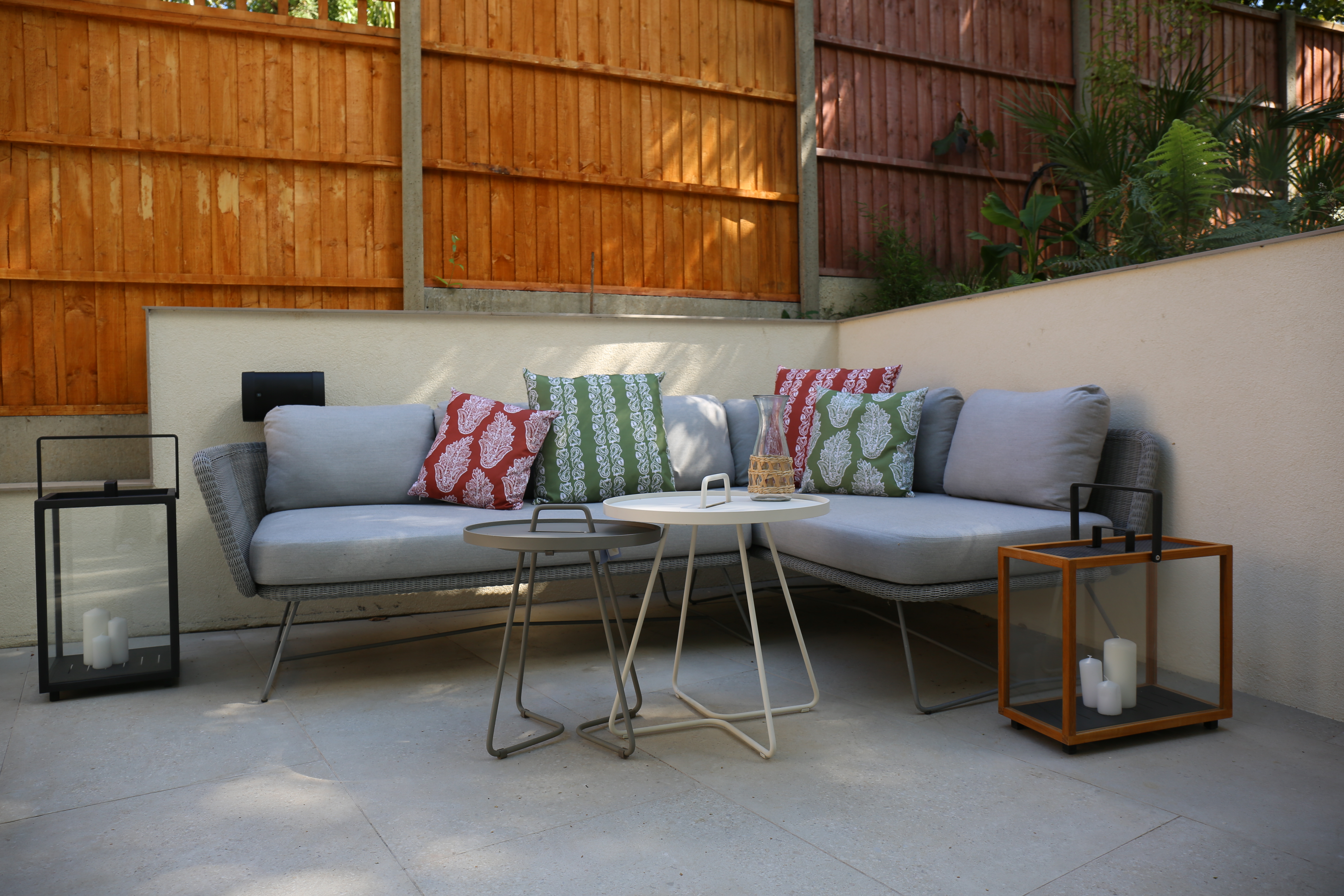 Sofa, Bistro Set, Tables and Lantern – Garden & Terrace